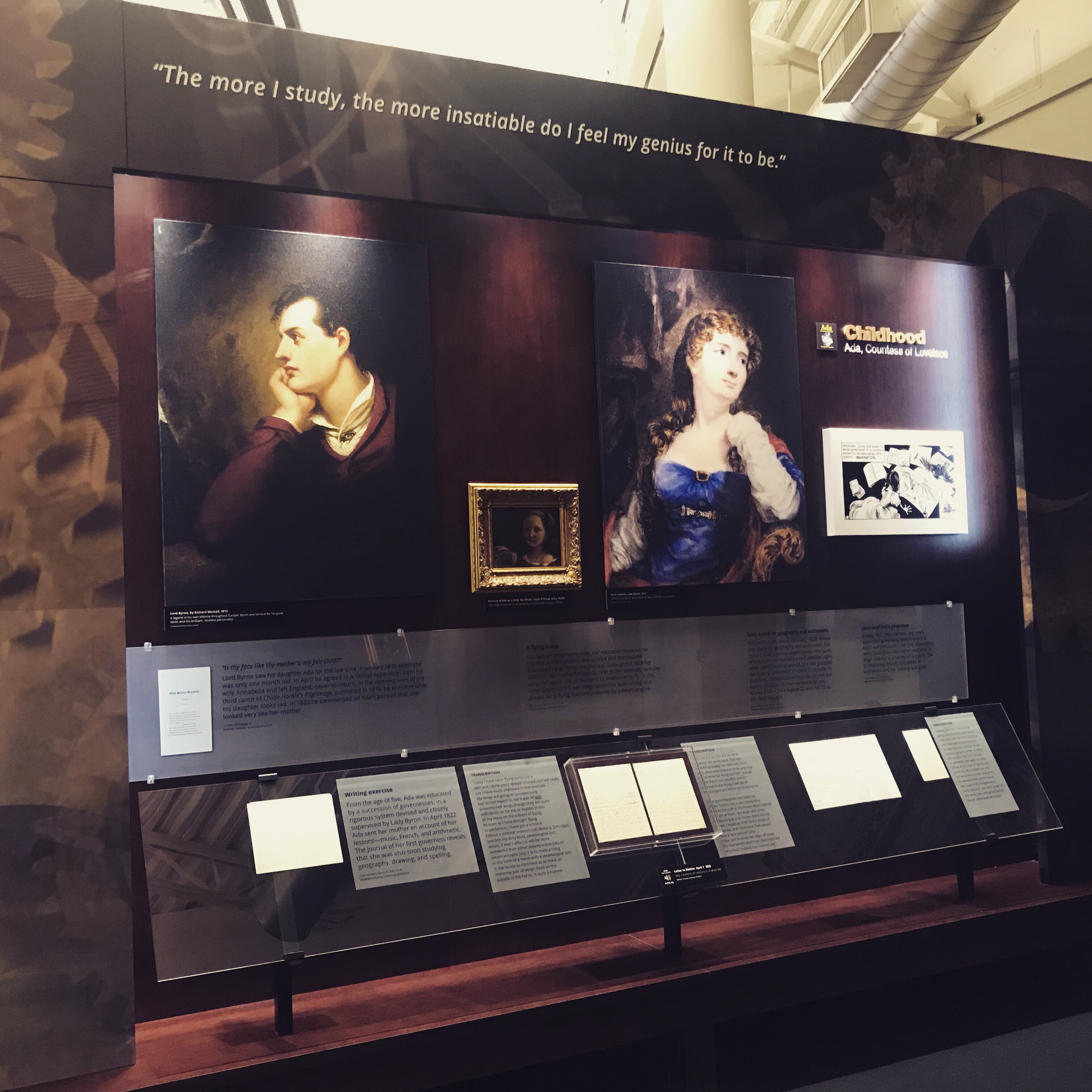 Yesterday was the last day to see the Thinking Big exhibit on Ada Lovelace at the Computer History Museum. This exhibit focused on writings of Lovelace that showed her great ideas for computers in the future. In the middle of the 1800s she was thinking about how computers/mathematics can be used to study inside the body.