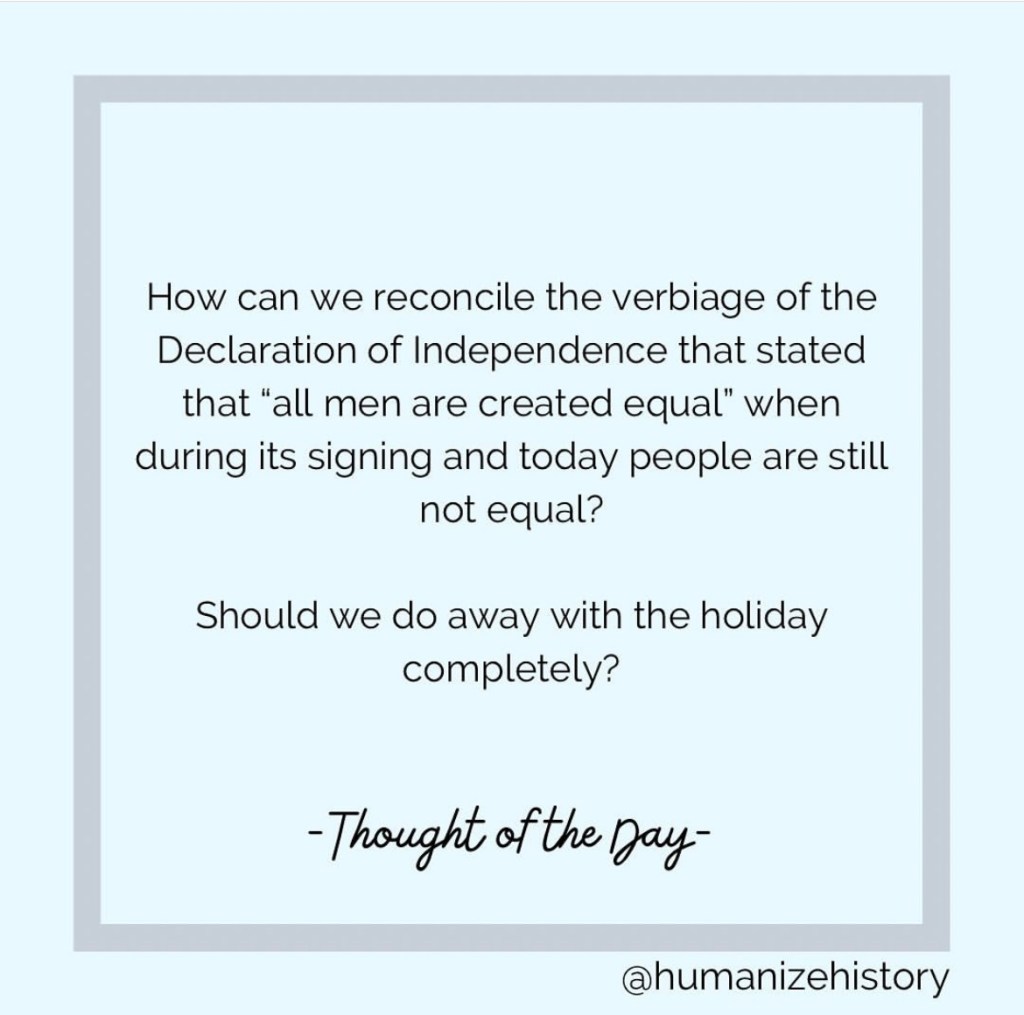 Below I have shared some things that I found on social media that help explain why 4th of July is a difficult holiday for many and raises some questions to think about.